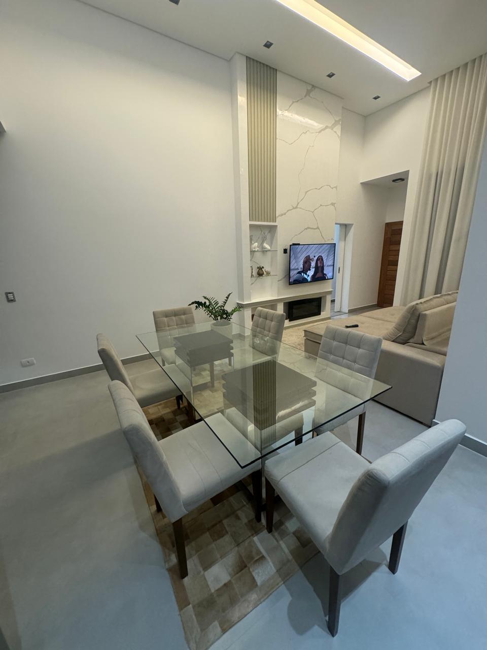 🏡 Imperdível oportunidade de alugar essa linda casa porteira fechada com 3 suítes Sala com pé direito duplo os quartos e a cozinha toda planejada, churrasqueira planejada, piscina, home Box, garagem 4 vagas, casa preparada para aquecedor, banheiro social e banheiro na churrasqueira.
